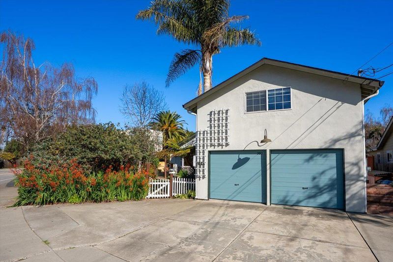 Coastal Butterfly Oasis a design-forward coastal retreat blending modern luxury and laid-back Santa Cruz living. Set on a 7,700+ sq ft lot, this home offers multiple outdoor living spaces, curated gardens, lush artificial turf, and expansive deck area for entertaining or unwinding in the ocean breeze. Artistic butterfly murals and a statement yellow front door lead into an airy, open-concept interior anchored by a striking river rock fireplace. The chefs kitchen features a large island, updated appliances, dual sinks, ample storage, and a built-in dining nook. The main level includes three bedrooms, including a primary suite with French doors to the yard and a spa-inspired bath. Upstairs offers flexible rooms ideal for a home office, media space, or guest retreat. A detached garage studio with a full bath adds incredible versatility for multigenerational living, guests, or remote work. Recent upgrades include owned solar panels, electric vehicle changing station, an on-demand water heater, and a newer high-efficiency furnace. Located just five blocks to Pleasure Point and walkable to top coffee spots and eateries. Creative, flexible, and effortlessly cool this is Santa Cruz living at its best.