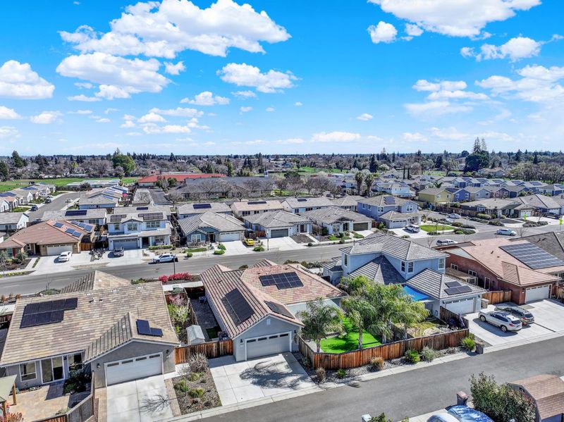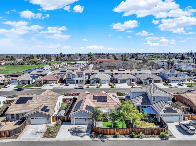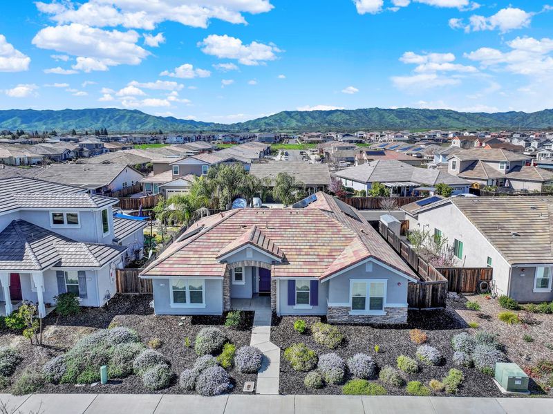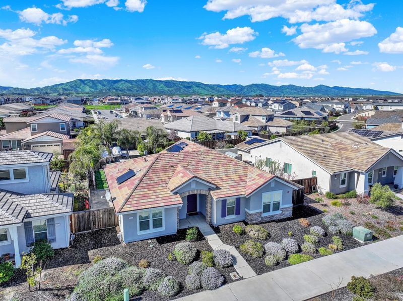 Step inside and feel instantly at home the welcoming entry invites you to relax and stay awhile. Designed for both comfort and functionality, this spacious single-story home offers 4 bedrooms plus a dedicated office/flex space and 2.5 baths, giving you all the room you need to live, work, and entertain with ease. The thoughtfully designed floor plan places the primary suite privately apart from the secondary bedrooms, creating a peaceful retreat at the end of the day. Throughout the home, you'll find fresh interior paint, beautiful tile flooring in the main living areas, plush carpet in the bedrooms for added warmth and comfort, updated window coverings, and solar for energy efficiency and long-term savings truly move-in ready and model-like in presentation. The heart of the home is the stunning kitchen, featuring a large island, stainless steel appliances, and an open great room concept that seamlessly connects the living and dining spaces. This airy layout flows effortlessly to the backyard, where you can enjoy morning coffee on the beautiful deck or host gatherings under the covered patio perfect for entertaining year-round. Spacious, stylish, and designed for modern living, this home offers the ideal blend of comfort and efficiency.