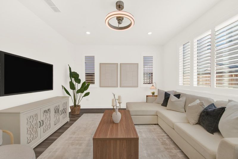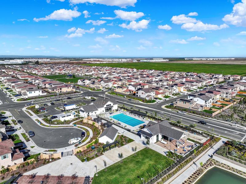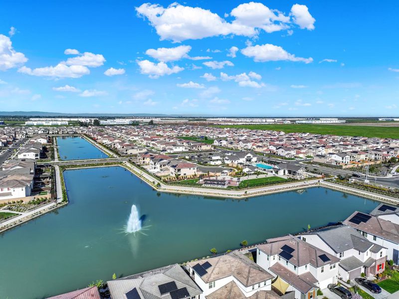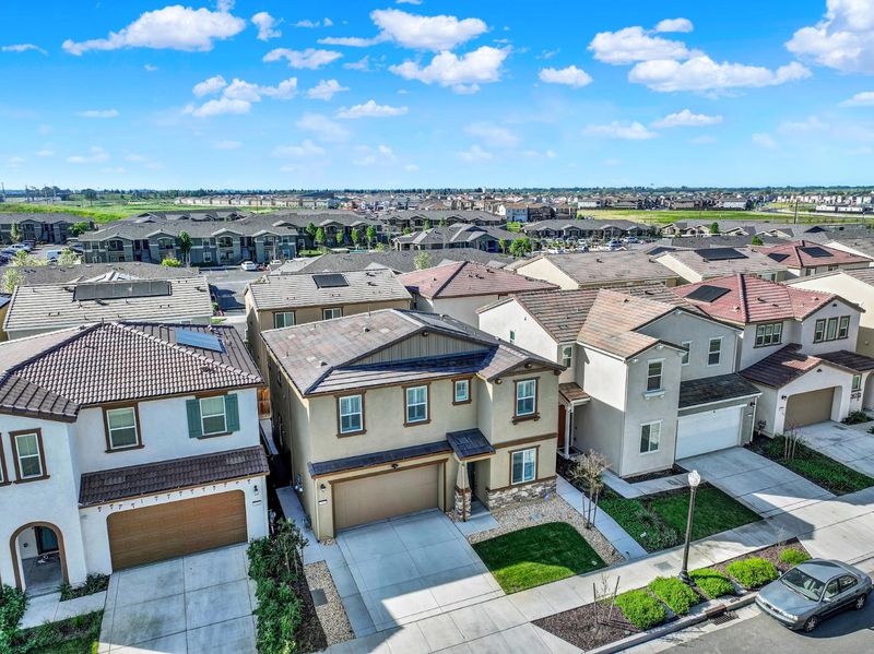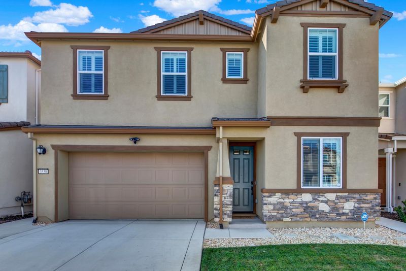 Welcome to this beautifully upgraded two-story single-family home, built in 2024 and offering 2,018 sq ft of modern living space. This 4-bedroom, 3-bath residence features a desirable downstairs bedroom and full bathroomperfect for guests, multigenerational living, or anyone looking to avoid stairs. The home showcases upgraded flooring, shutters, and a bright open layout designed for comfortable everyday living. The spacious kitchen includes a refrigerator and flows seamlessly into the main living areas, ideal for entertaining. Upstairs you'll find a large loft offering flexible space for a home office, media room, or play area, along with an extra-large primary bedroom closet providing exceptional storage. Step outside to a fully landscaped backyard complete with a pergola-perfect for relaxing or hosting gatherings. Additional upgrades include an epoxied garage floor and a low solar lease for energy efficiency. Located in a highly desirable community featuring resort-style amenities including a clubhouse, pool, and scenic walking trails surrounded by beautiful lakes. This move-in-ready home offers the perfect blend of comfort, style, and community living. A commuters dream with quick access to 99, 5, and the airport.