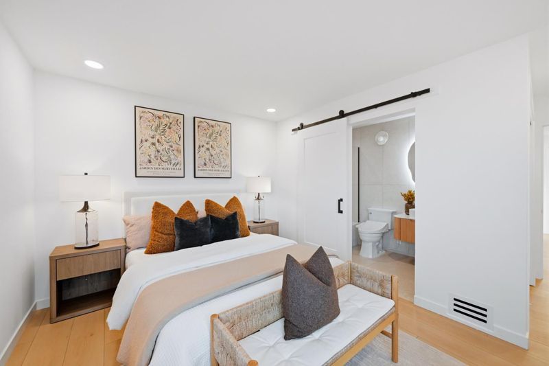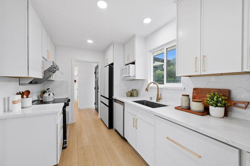 Extensively remodeled 4-bedroom, 3-bathroom home with a dedicated office, offering a flexible and functional floor plan. Recent upgrades include a newer electrical panel, fully remodeled kitchen and bathrooms, updated furnace and ductwork, recently installed insulation, and all-new windows throughout. The main level features three bedrooms and two bathrooms, including a newly added primary bathroom finished with Porcelanosa tile. The updated kitchen offers slim shaker cabinetry, quartz countertops, and smart appliances. Bright living spaces showcase quality finishes and abundant natural light. The lower level provides additional living space with a secondary family room, fourth bedroom, private office, and a full bathroom, ideal for guests, work-from-home, or multi-generational living. Outdoor amenities include a rare oversized deck with an outdoor movie projector, an additional viewing deck with Bay water views, and decking and fencing constructed with a combination of composite materials and solid wood. Low-maintenance artificial turf, decorative stepping stones, and landscaped grounds complete the exterior. Located in a top-rated school district, this move-in-ready home offers comfort, versatility, and convenience in a highly desirable Peninsula location.