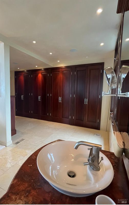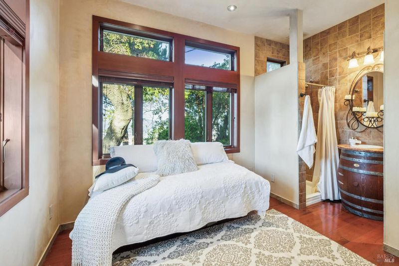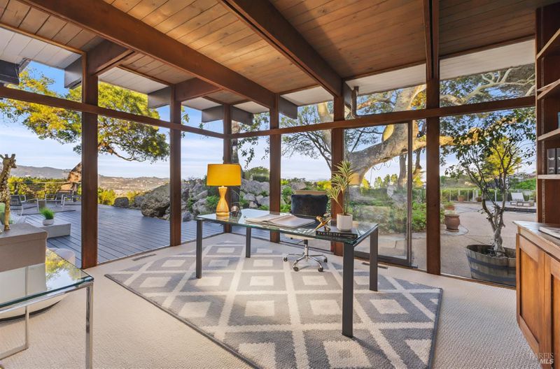 Perfectly positioned atop a premier San Rafael hillside, this gated estate offers unmatched privacy, dramatic scale, and sweeping views of San Pablo Bay and the East Bay hills. Sunlight fills the home through floor to ceiling windows, enhancing the connection to the outdoors and highlighting the openness of the great room with its custom oak fireplace and effortless indoor outdoor flow. The spacious kitchen features a large butcher block island, Wolf range, double ovens, abundant storage, and easy access to the deck. Each bedroom and living area has been designed for comfort and function, including a bright sunroom or creative space off one of the bedrooms and a lower level game room with an ensuite JADU ideal for guests or extended family. The outdoor environment lives like a private retreat with a pool, jacuzzi, stone pathways, water feature, vineyards, and multiple seating and entertaining areas surrounded by mature landscaping. The expansive deck connecting the office and primary suite captures panoramic Bay views, creating an ideal setting for relaxing, dining, or hosting against a spectacular natural backdrop.