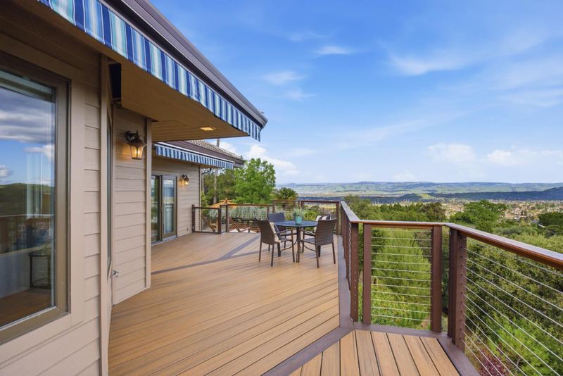 Perched in the scenic Los Gatos foothills, this exceptional estate offers 4,644 sf of refined living with sweeping views across the Santa Clara Valley. Designed for both entertaining & everyday comfort, featuring a solar-heated pool & spa, gazebo, & multiple expansive decks capturing stunning vistas & twinkling evening lights. The chef's kitchen boasts an oversized island with skylight, quartz countertops, plentiful cabinetry, SS dbl ovens & Sub-Zero refrigerator. A charming breakfast nook overlooks gently sloping low-maintenance grounds with numerous fruit trees, creating a private hillside retreat. Gleaming hardwood floors & a full bthrm & bd/office w/private balcony grace the main level, & recessed lights, a cozy gas fireplace, numerous windows & glass doors, & an elegant formal dining room highlight the living spaces. The primary suite offers dbl French doors, private atrium, & spa-like ensuite w/ soaker tub, steam shower, dbl sinks, & 2 walk-in closets. The flexible layout offers a lg rec rm w/wet bar, sauna or wine room, laundry rm & ample storage. A 4-car garage & large circular driveway provide abundant parking. This is a rare opportunity to own a luxurious foothill estate offering space, privacy, & unparalleled views in one of Silicon Valley's most desirable communities.