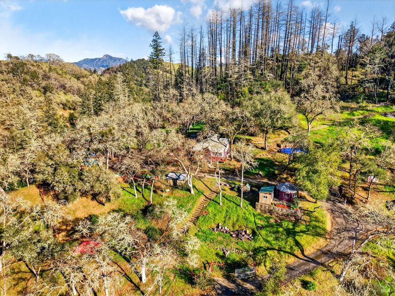 A truly unique offering tucked between Healdsburg and Calistoga, this one-of-a-kind property blends history, natural beauty, and exceptional versatility. Spanning 10.59 acres across two parcels, the property offers added flexibility and future potential. Enter through one of two private entry gates and discover a serene, park-like setting featuring open views and a true sense of privacy. The property includes a studio house, detached guest studio, yurt, small art studio, and a tiny home currently operating as a successful Airbnb, creating immediate income potential and endless use possibilities. Maacama Creek borders the edge of the property, offering a beautiful, year-round stream with private accessan ideal backdrop for a peaceful retreat or creative escape. At the top of the property sits a stunning, flat building site with sweeping views, perfectly positioned to build your dream home in addition to the existing structures. Formerly home to the Leap Year School from 2002-2019, this special property carries a rich history while offering a rare opportunity for a private compound, retreat center, or investment. Located just seconds from world-class wineries and approximately a 15-minute drive to both downtown Healdsburg and Calistoga, this property offers a private oasis in the heart of Wine Country with exceptional versatility and income potential.