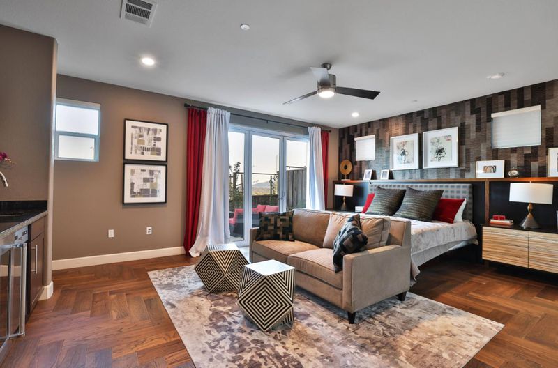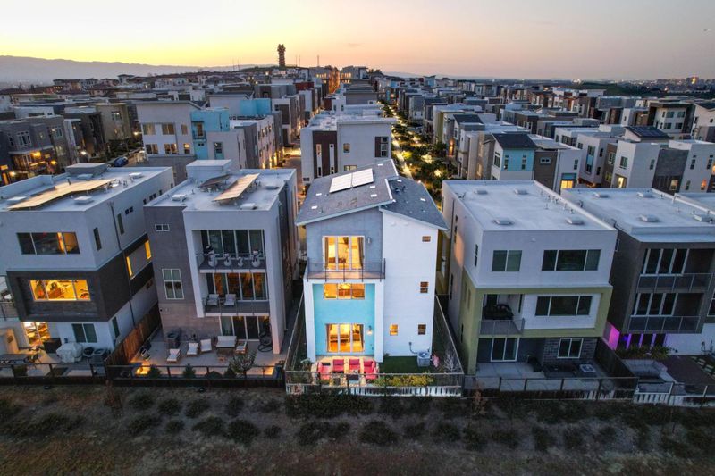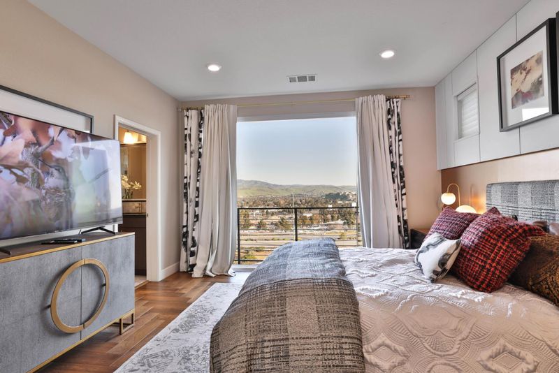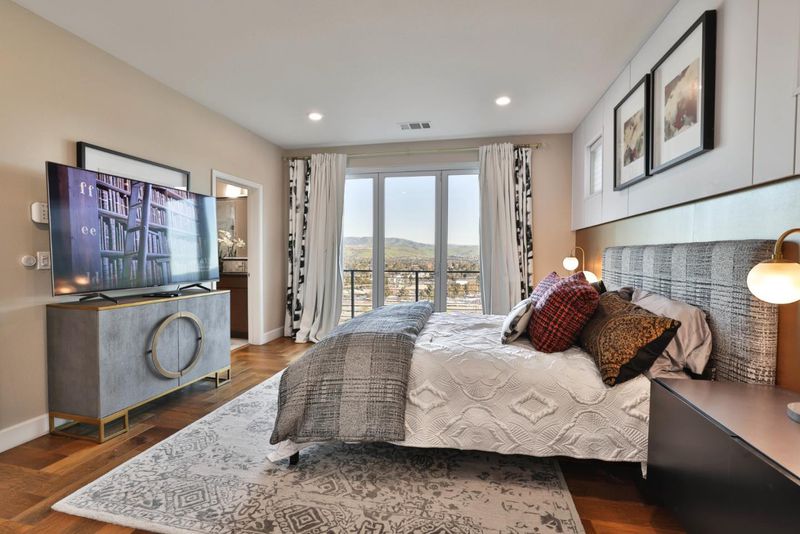 Located at the top of highly desirable Communications Hill, this former KB model home offers extensive upgrades and unobstructed views of the East Hills. Built in 2019, this detached single-family residence features 4 bedrooms, 3.5 bathrooms, and 2,518 square feet of living space. The interior showcases herringbone-pattern engineered oak hardwood floors, recessed lighting, and expansive windows. The open gourmet kitchen features black quartz countertops, a large island, and stainless steel KitchenAid appliances including a built-in refrigerator and five-burner gas range. The primary suite offers sweeping hill views, a private balcony, and a walk-in closet with custom built-ins. The spa-inspired bath includes dual quartz vanities and marble shower surrounds. A first-floor in-law suite provides flexibility with a built-in kitchenette, full bathroom, and three-panel bi-fold doors opening to a private backyard. Additional highlights include built-in entertainment cabinetry, a two-car garage with two EV chargers (including Tesla), owned solar, whole-house water filtration, and multi-zoned HVAC with an Ecobee thermostat. The backyard features drought-tolerant landscaping, low-maintenance turf, and unobstructed hill views, with easy access to parks, trails, and Highways 87 and 101.