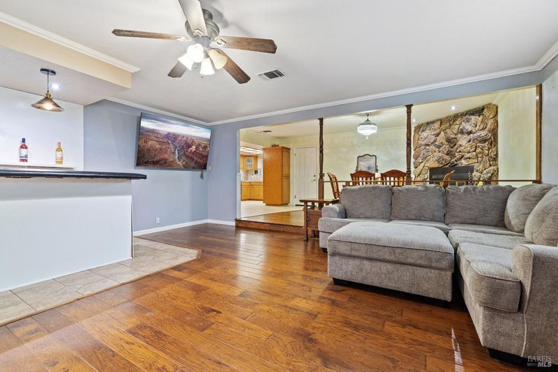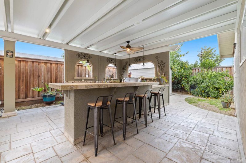 Welcome to this charming Dixon home, designed for year-round entertaining! The beautifully updated kitchen features granite tile counters, a custom backsplash, and under-cabinet lighting. The dining area flows seamlessly into a spacious family room complete with a built-in bar. Step outside to an impressive backyard retreat with a covered patio, gas fireplace, and a fully equipped outdoor kitchen with a tankless water heater. Additional highlights include newer HVAC, paid solar, and an Evo water system. Don't miss your chance to make this wonderful home yours!