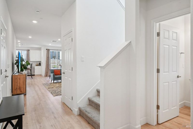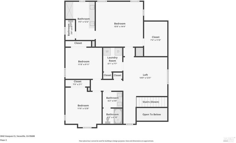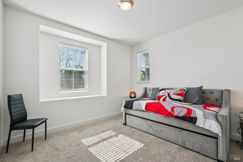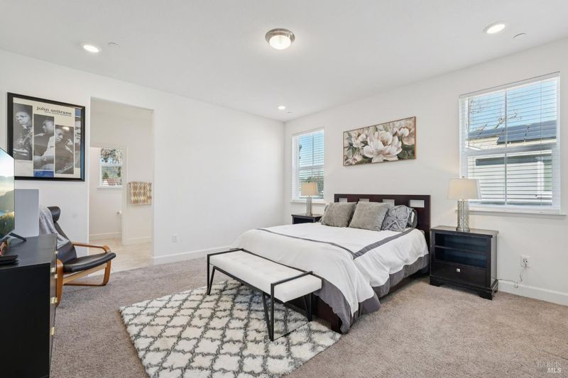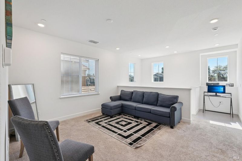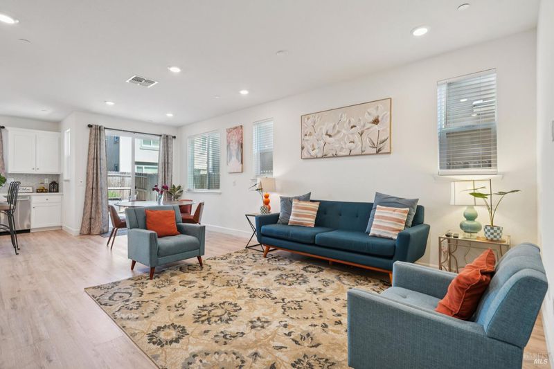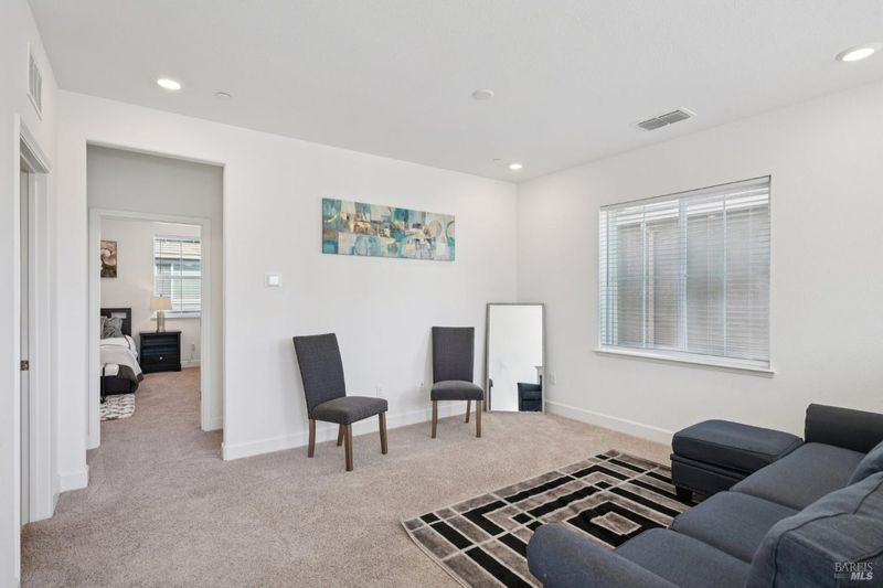Welcome to 3042 Vasquez Court. This home, built in 2023, offers contemporary finishes and a prime location in Vacaville's highly desirable North Orchard area. Located within the Farmstead community, this 4-bedroom, 3.5-bath residence provides a functional layout designed for comfort and everyday living. The main level features an open-concept living and dining space that flows seamlessly into the kitchen. Appointed with quartz countertops, a tile backsplash, gas range, built-in microwave, modern cabinetry, a walk-in pantry, and a large island with seating, the kitchen offers both style and practicality. A first-floor junior suite with a private full bathroom allows flexibility for guests, extended family, or a dedicated workspace. Upstairs, the primary suite serves as a spacious retreat, offering ample room, a walk-in closet, and an en-suite bathroom with dual vanities and a separate tub and shower. A versatile loft provides additional living space ideal for a media room, office, or play area. The upstairs laundry room adds everyday convenience and functionality. Energy-efficient features include owned solar and EV charging capability. Appliances are included for added convenience. Conveniently located near local schools, shopping, and neighborhood amenities, including Dreamers Park, this home offers accessibility within an established residential setting. Come see a well-maintained North Vacaville home with modern efficiency and thoughtful design.