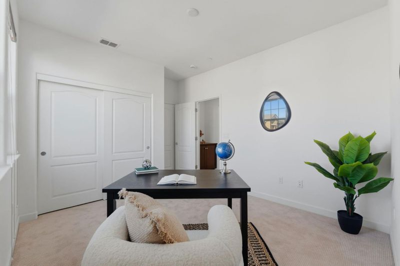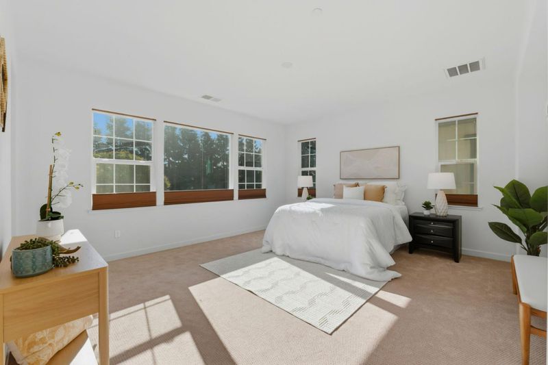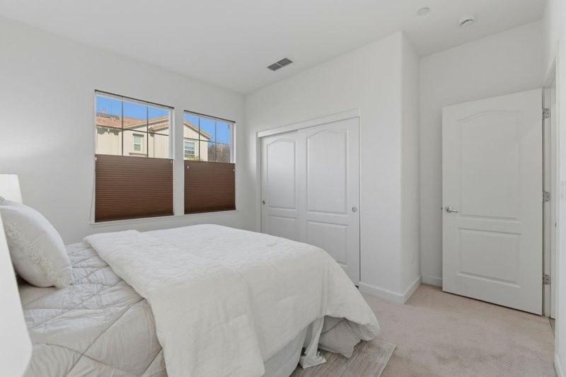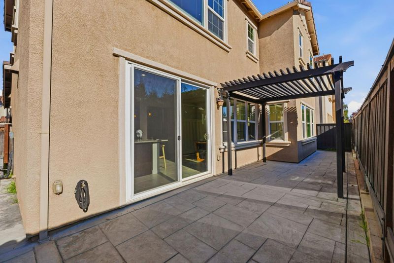 Nestled on a private street in a community adjacent to Greenwood Park. North facing with no rear neighbors, this bright and airy home offers privacy and a peaceful setting. The open floor plan features high ceilings, a modern kitchen with granite countertops, island with stainless steel sink, gas range, high-powered hood, full backsplash, and designer Mocha cabinets with metal handles, along with upgraded carpet and premium padding. The interior has been professionally painted and includes an interior sprinkler system for added safety and potential insurance savings. Enjoy year-round efficiency with double-pane windows, a tankless water heater, and dual-zone heating and AC. The low-maintenance backyard features stamped concrete and a professionally installed pergola, ideal for outdoor relaxation. The home includes a first-floor bedroom and full bath, plus an upstairs primary suite with a large walk-in closet and master bath with a make-up desk. A spacious laundry room with utility sink, 2-car garage, and private driveway provide convenience, while the HOA maintains the front yard. Walking distance to Chabot College and Southland Mall, with easy access to the San Mateo Bridge and Hwy 880, this move-in-ready home blends comfort, style, and practicality.