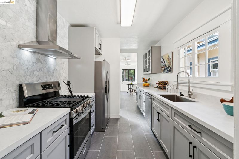 This charming 3-bedroom, 1-bath Lower Elmwood home seamlessly blends classic character with thoughtful modern updates. Beautiful period details and recently refinished hardwood floors run throughout, creating a warm and inviting feel, while the remodeled kitchen and bathroom—featuring newer stainless steel appliances—bring ease and style to everyday living. Set on an idyllic tree-lined street, the home welcomes you with a spacious front porch perfect for morning coffee or evening unwinding. Out back, a large, fenced, park-like yard and expansive deck offer endless possibilities for entertaining, relaxing, or even future expansion. Additional highlights include a generous attic, garage, off-street parking. Ideally located just a short distance to UC Berkeley, BART, Whole Foods, Berkeley Bowl and more, with an impressive Walk Score of 89 and Bike Score of 96, this home offers the perfect balance of charm, convenience, and opportunity. Home Energy Score of 3.
