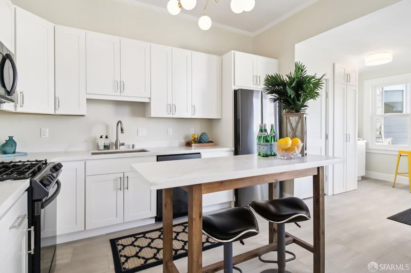 In the heart of Duboce Triangle, this spacious full floor 3-bed, 2-bath condominium has been thoughtfully remodeled to balance modern comfort with clean architectural lines. Light fills the open living and dining spaces, creating a sense of volume rare for the neighborhood. The updated kitchen is sleek and efficient, with premium finishes and integrated storage that enhances rather than interrupts the visual flow. All three bedrooms are generously scaled, including a serene primary suite with custom built-ins and a refined bath. A second bath has been renewed with contemporary fixtures and understated luxury. original floors, curated lighting, in-unit laundry, and abundant closets add ease and sophistication. Moments to tree-lined Duboce Park, neighborhood cafes, transit, and the best of San Francisco living, this is a home to be lived in beautifully quiet, spacious, and uncompromising.