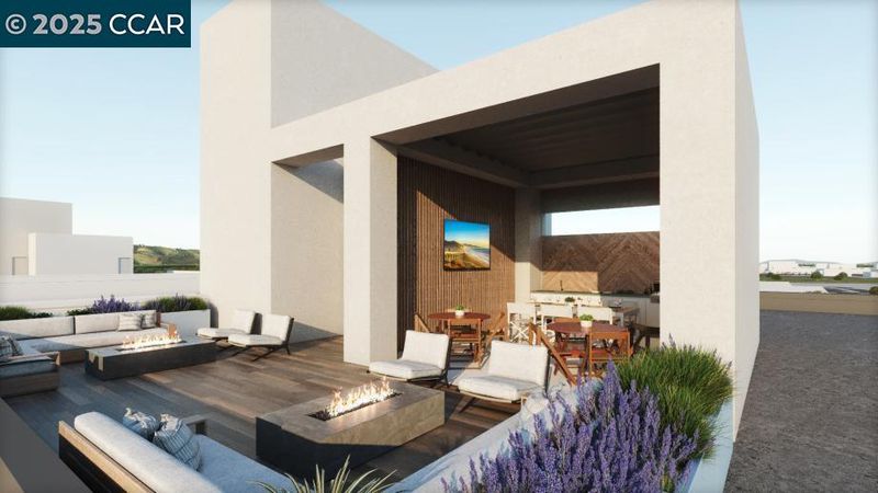 Victoria Station at Metro West brings new luxury condos and convenience to your doorstep with access to neighborhood retail, community park and clubhouse. Lovely home with soaring views and sweeping space. The airy entry reveals a stunny two-story great room with views to a covered porch. Gourmet kitchen is complete with a casual dining area with patio access, a large center island, breakfast bar, wraparound counter, KitchenAid stainless steel appliances, quartz countertops and a sizable pantry. Primary bedroom suite with a walk-in closet, rimary bath, a dual-sink vanity, a large luxe shower with seat, and a private water closet. Central to a loft, secondary bedrooms feature walk-in closet. Intimate 15 home condominium has a roof top deck with bbq, fire pit, and seating area to enjoy with family and friends. Exclusive to this community the comforts of a movie screening room, dog washing station, shared office work space, and entertainment kitchen area. Toll Brothers Newest Community in the sought after area of Fremont's Innovation District!! Great commute location with easy access to 680 and 880 as well as walking distance to BART. Close to the 'High Tech' industry and great schools. ( photos not of actual home, for marketing only) 3 left in the entire community.