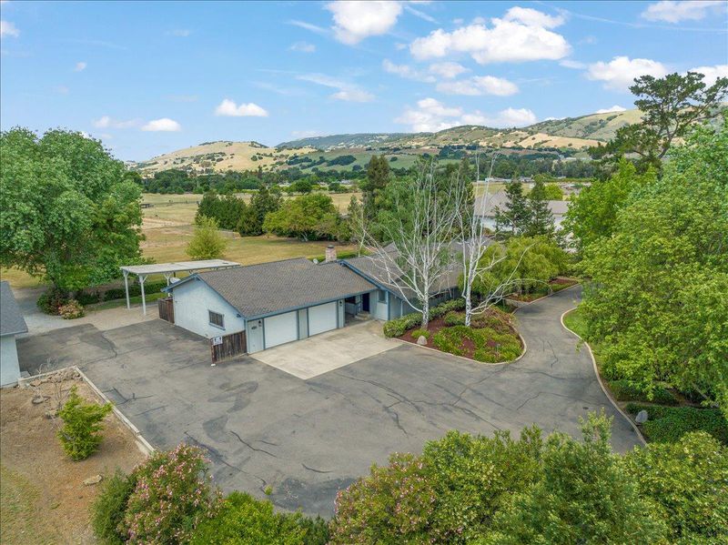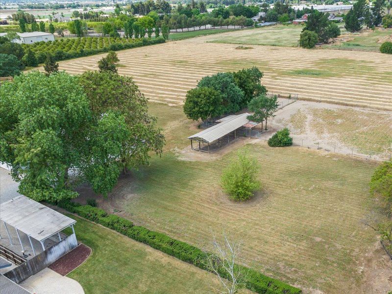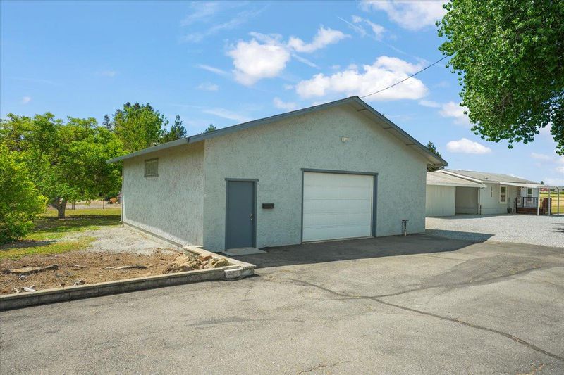 Set on 7.3 usable flat acres, this exceptional property offers versatility and country appeal. A circular asphalt driveway welcomes you with abundant parking and easy access. The refreshed single-story custom home features 4 bedrooms and 2.5 baths, highlighted by rustic redwood beam cathedral ceilings, freshly painted interiors, and all new LED lighting and fixtures. The remodeled primary bath showcases a frameless stall shower and double vanity. The living/dining room combination overlooks the backyard patio, while the separate family room with fireplace and slider opens to the patio, ideal for indoor-outdoor living. A separate studio with kitchen and full bath attached to the rear of the garage provides great use and flexibility options. A permitted 1,000 square foot modular home, built in 2000, includes 2 bedrooms/2 baths, a laundry room, covered parking, and three additional storage spaces-this unit operates independently with its own electric sub-meter and propane tank. Additional improvements include a 35 x 35 utility building with roll-up door, concrete floor, electricity, and shelving. Covered RV parking features septic dump, water, and power hookups. Pipe corrals, covered storage, and expansive rear acreage provide opportunity for future expansion or development. Rare