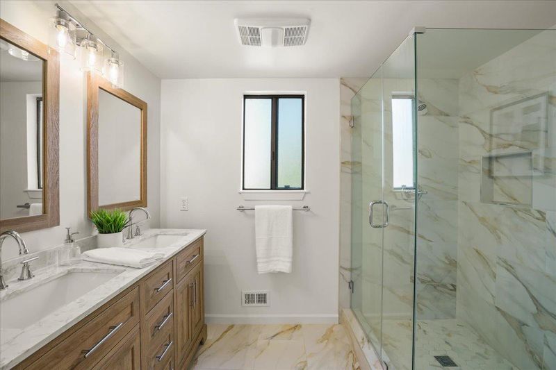- Double Sinks, Shower over Tub - 1, Stall Shower