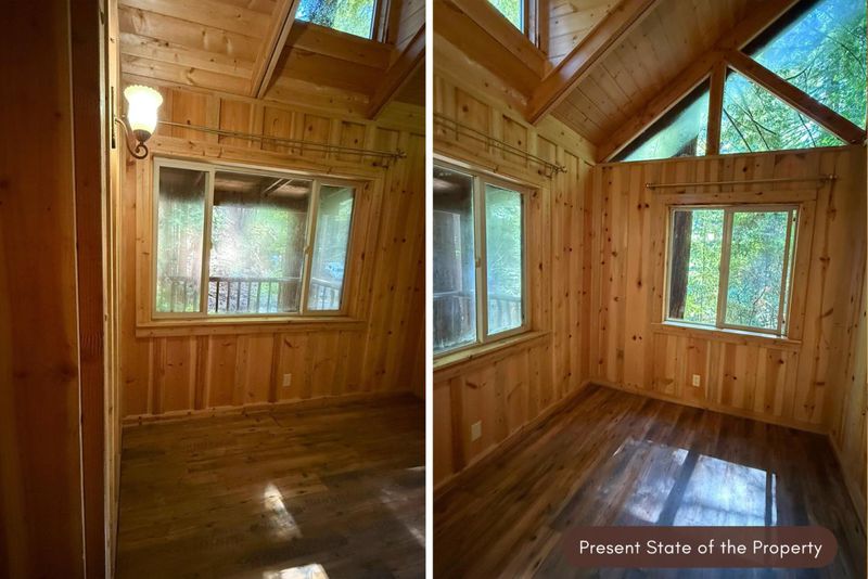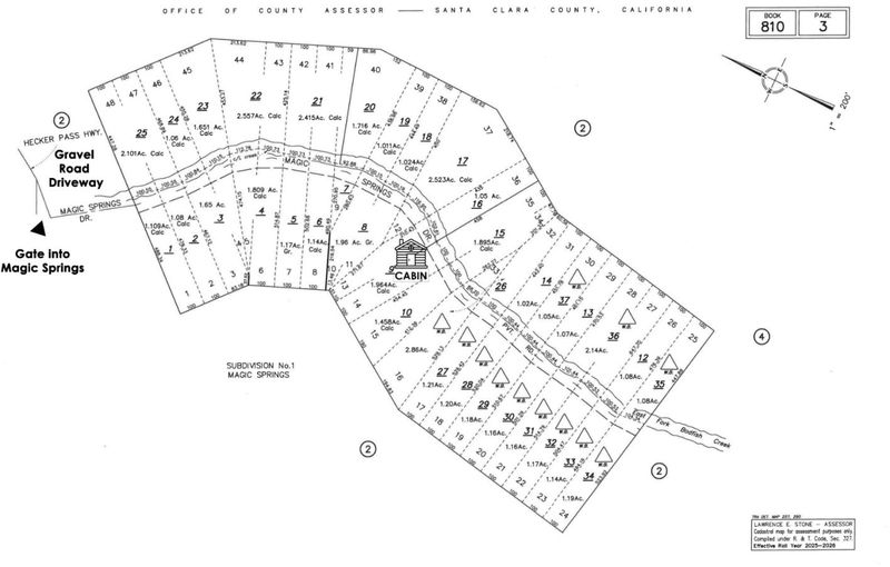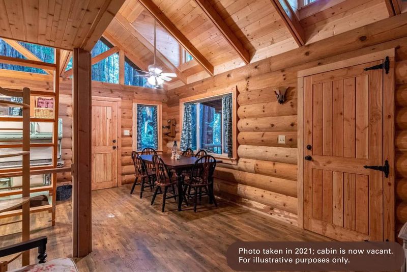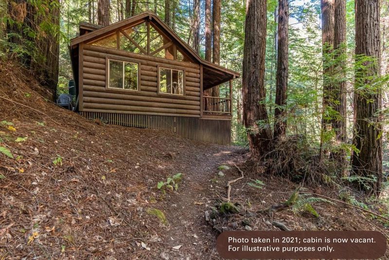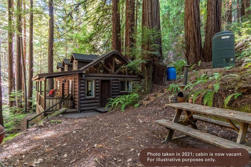 This cabin embodies craftsmanship, serenity, and privacy among towering redwoods. Built in 2014 by Lyndon K. Meader, most woodwork was handcraftedsome cut on-site, others crafted in Meaders Gilroy shop. The goal was to create a generational family spot, where family could gather and enjoy each other's company in a one-of-a-kind setting. The vaulted ceilings, exposed beams, and clerestory windows allow natural light and frame tranquil forest views. Bedrooms overlook picturesque scenes and Bodfish Creek below. Utilities include generator power, water-pressure pump, spring-fed holding tank with auto-fill/shut-off, new toilet, and Avalon Tree of Life propane heater (Built Oct 2007). A shed houses the generator. Log construction ensures long-term comfort. There is a picnic area and plenty of areas to explore along the creek to view majestic Redwoods, and more at Magic Springs, Gilroy. The seller is only able to accept cash at this time. DISCLAIMER: First 17 photos were taken in 2021; cabin is now vacant. Buyers should verify all measurements.