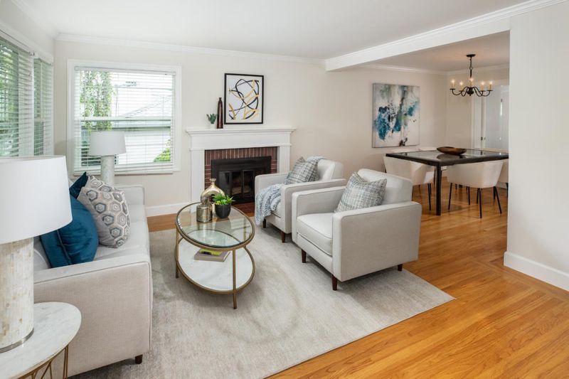 Classic traditional appeal defines this split-level home with charming white picket fence and expansive wraparound grounds. Best block of Alameda De Las Pulgas with easy access to Woodside Rd and 280. Freshly painted interiors are complemented by hardwood floors in most rooms contributing to the homes overall warmth. The living and dining room combination offers generous space highlighted by a fireplace, crown moldings, and abundant natural light. The kitchen has been refreshed with newly painted cabinetry, reglazed tile countertops, and new vinyl flooring, plus there is a spacious family room with new carpet, fireplace, and rear deck access. The homes 4 bedrooms and 2 baths include a main-level bedroom and newly remodeled bath, plus three upstairs bedrooms and a bath with resurfaced finishes. Outdoor living is a standout feature, with a large wraparound yard that includes expansive hardscape, deck with shade sail, a rear lawn with putting green, and a cabana lounge for relaxation or entertaining. Attached 2 car garage with built in cabinetry, AC, dual pane windows and more make this a great place to call home!