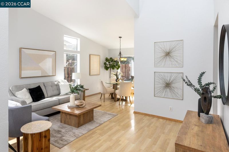 Love where you live! This quiet neighborhood has views of the convergence point of the San Francisco Bay Estuary and the Sacramento/San Joaquin River Delta. This delightful 2 story home is welcoming and cozy. Walking through the front door you will notice the attractive laminate flooring that runs through the living room, dining area and family room. High ceilings give the family room a light and bright warmth. Past the dining area you will find the living room with fireplace and a great view of the back yard. Upstairs you will enjoy the primary bedroom, bathroom and walk in closet. Down the hall are 2 good size guest bedrooms with a guest bath. This area is perfect for family, guests or a home office. The backyard offers a large patio perfect for outdoor dinners and gatherings. If you like to garden or just enjoy the tranquility of green trees and plants the hillside offers what you desire. Well located for commute purposes with easy access to the freeway and convenient to 242 and 680 freeways.