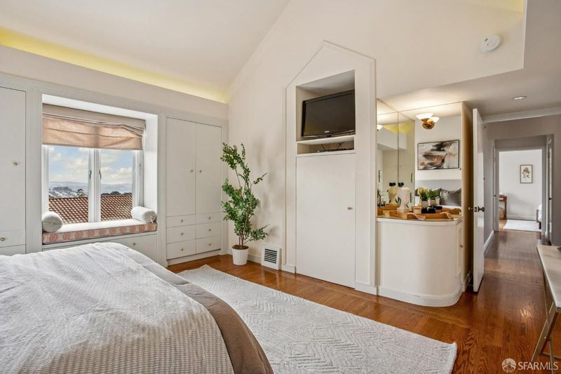 With unobstructed views to the Farallones, this alluring, fully detached three bedroom/three bathroom house sits perched overlooking Sherwood Forest and the western part of the City. Significantly upgraded and maintained by the same family for 47 years, the home enjoys classic details of its 1941 construction while reflecting modern touches such as a stunning marble fireplace surround in the living room, updated kitchen, remodeled primary bedroom, home office, fabulous great room with vaulted ceiling and fireplace, walk-out deck complete with hot tub and special green space designed by renowned San Francisco landscape designer, Michael Painter. The home offers striking nine foot ceilings, parquet hardwood floors, crown molding, new double-pane windows, two working fireplaces, LED lighting throughout, a very large garage with extra storage and a room ideal as a wine cellar, and solar panels. The home is conveniently located in the heart of the City - in minutes you can be on West Portal or Market Street. Equally easy is access to 280, 101 and a variety of transit lines. It is the ultimate urban experience when you can live in a tranquility and know that minutes away you're enjoying the best of a thriving city.