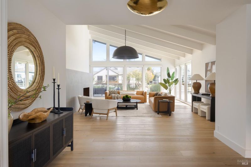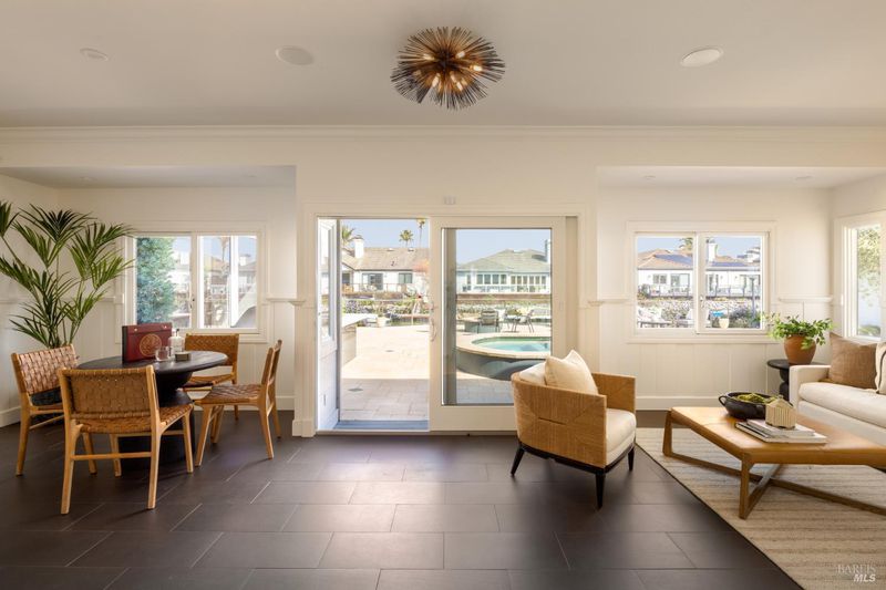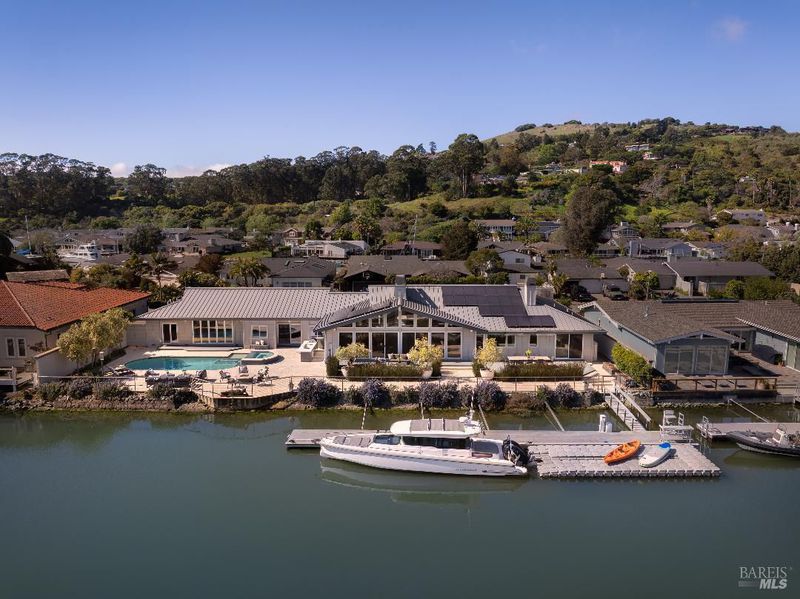 Extensively remodeled since 2022, this gated Paradise Cay waterfront residence sits on a rare, expansive double lot offering exceptional privacy and scale. A dramatic entry opens to vaulted living and family rooms anchored by a statement fireplace. The open floor plan centers around a newly built gourmet kitchen with an oversized island seating six, a 6-burner Thermador range with dual ovens, dual Thermador dishwashers, a full-size refrigerator, a full-size freezer, a Monogram beverage center, and a butler's pantryideal for effortless entertaining. The home features four bedrooms and four and a half baths. The luxurious primary suite includes dual walk-in dressing areas, separate bathrooms, and a formal office overlooking the pool and waterfront vista. In addition, the home offers a media room, mudroom, laundry room, wine closet, additional office area, and a three-car garage. Enjoy magnificent sunrises from the stone patio or while relaxing by the pool or spa. An 80-foot private dock creates an exceptional waterfront lifestyle opportunity.
