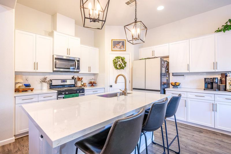 Welcome to this impeccably maintained 3 bedrooms 2 bath home that sits on a spacious 9800 sq ft lot in a desirable cul-de-sac location featuring an open concept layout that creates a bright, airy atmosphere with abundant natural light throughout. The kitchen showcases an island, quartz countertops, walk-in pantry and a seamless flow into the living room and adjoining breakfast nook- perfect for both everyday living and effortless entertaining. A formal dining room was selected in place of the builders optional fourth bedroom; however, this space can easily be converted to serve as a fourth bedroom if desired. Each bedroom includes walk-in closets while the primary suite offers an oversized bathroom with double vanity, deep soaking tub. This property truly shines inside and out, with a thoughtfully designed backyard ideal for relaxation and gatherings. Enjoy spending time entertaining guests or simply unwinding in a space which features two gazebos, a stone grilling area. The backyard is enhanced with abundant fruit trees and vibrant flowers. Additional highlights include matching storage room, expanded driveway and extensive drainage system for added functionality. This home offers a great blend of comfort, style, and indoor-outdoor living in a desirable location.
