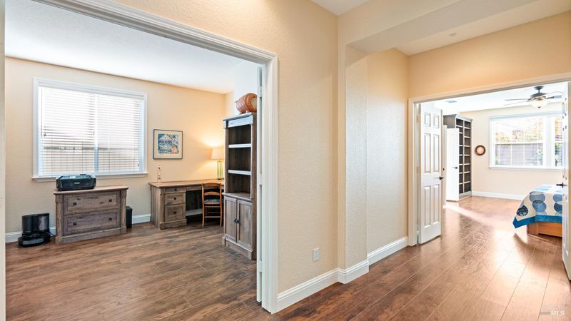Welcome to Clover Springs, a sought-after Del Webb 55+ community. Located on a desirable corner lot facing open space, this spacious Mendocino model offers over 2300 square feet of comfortable living and effortless entertaining. New Roof, Energy-efficient solar, backup batteries, and EV Charger add exceptional value and convenience. As you enter, you're greeted by a generous formal living and dining area with clear views through the family room and out to the beautifully landscaped backyard. The updated kitchen features an island, breakfast nook, and bar seating-perfect for casual meals or hosting guests. The oversized primary suite includes an updated bathroom, a large walk-in closet, and direct patio access-ideal for slipping into the hot tub on warm Cloverdale evenings. A versatile den/office with built-in shelving and double-door entry can easily serve as a third bedroom. Relax outdoors under the covered patio and unwinding in the hot tub while enjoying the peaceful surroundings. Take advantage of nearby walking trails and the community's many amenities, including pool, tennis, bocce ball, crafts, billiards, and more. Experience the best of active adult living in this welcoming Clover Spring home.