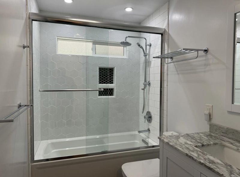 - Bidet, Double Sinks, Dual Flush Toilet, Full on Ground Floor, Shower over Tub - 1, Skylight, Stall Shower, Tub in Primary Bedroom, Updated Bath