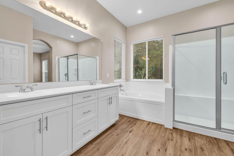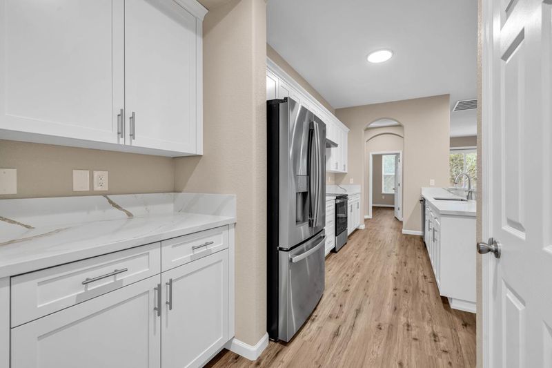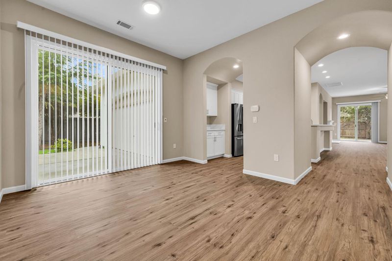 A beautifully & fully renovated home located in the highly desirable North Natomas neighborhood. This stunning 4-bedroom, 2-bathroom residence offers 2,013 square feet of modern living space and feels like a brand-new home from top to bottom. Every detail has been thoughtfully updated for comfort, style, and long-term durability. The home features new Rigid Core luxury vinyl flooring throughout, providing a clean, modern look that is both elegant and low-maintenance. Fresh interior and exterior paint give the home a clean, updated, and inviting feel inside and out. The kitchen has been completely rebuilt with contemporary cabinetry, quartz countertops, and brand-new stainless steel appliances, including a refrigerator, stove, dishwasher, and garbage disposal. Both bathrooms have been upgraded with new Corian countertops, new fixtures, and fresh finishes. Additional major upgrades include-New A/C and central heating system, new water heater, new dual-pane windows, new window blinds, new washer and dryer. This turn-key home is part of a well-maintained HOA that offers access to a clubhouse, swimming pool, and fitness center. With its spacious layout, modern upgrades and prime location near parks, shopping, dining, schools and major freeways, this property is truly move-in ready.