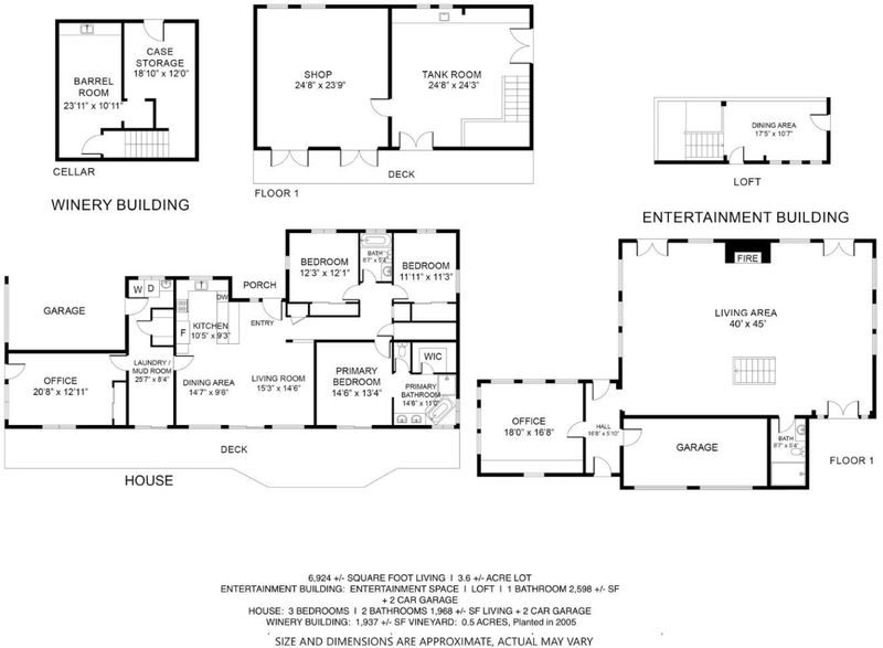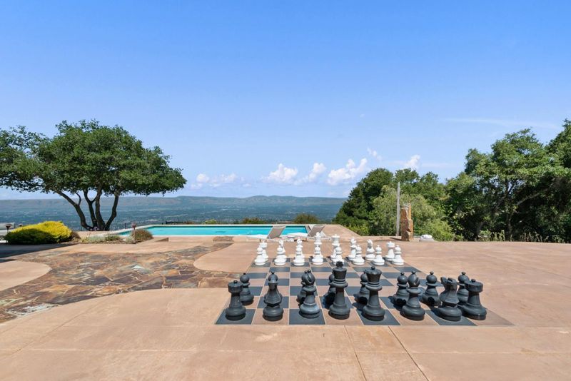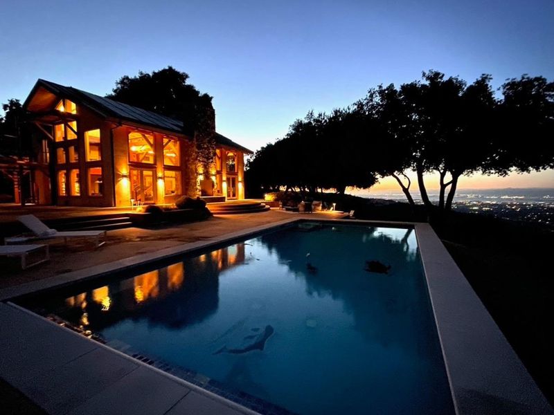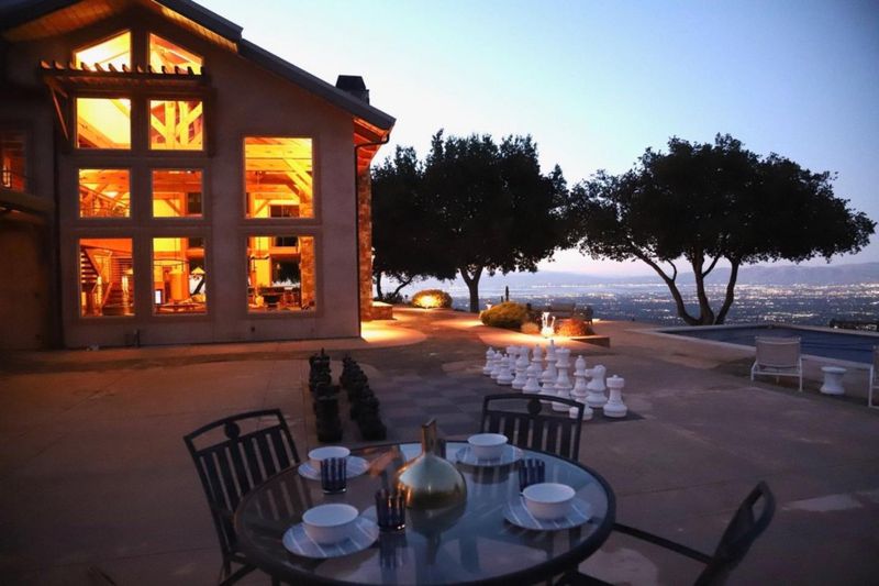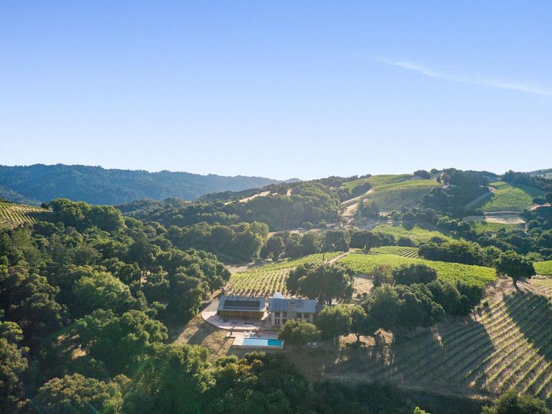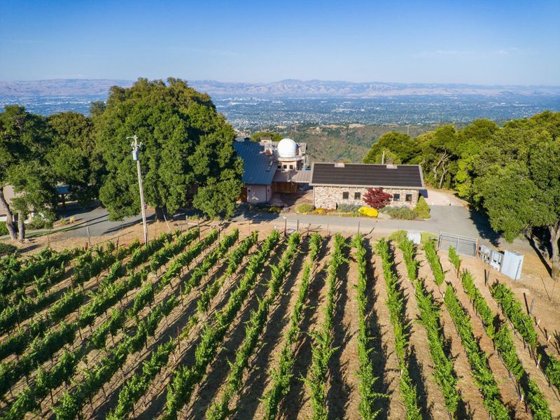 Exceptional opportunity to acquire a rare Cupertino estate with panoramic views of Silicon Valley. This property includes a luxury residence, a fully operational winery, and 0.5 acres of mature Cabernet Sauvignon estate vines, all set amongst world-class wineries. A custom-built entertainment building is designed for high-capacity use, offering soaring ceilings, expansive windows overlooking a solar heated pool with outdoor shower, full bathroom, dual fireplaces, wet bar, family room, loft, office with built-in cabinetry, integrated audio system, and an observatory. The residential component consists of 3 bedrooms and 2 full bathrooms, with views from every room, including a primary suite with walk-in closet and ensuite bath. The gourmet kitchen is equipped with high-end appliances, quartz countertops, and a commercial dishwasher. The winery building is a full production facility featuring a bottling room, 4 large fermentation tanks, cellar, temperature controlled storage, all for operational use or flexibility for alternative uses. Fully owned solar panels offset the majority of energy costs, and there are 2 separate two-car garages (one with EV charging), and on-site parking suitable for large events. Conveniently located near hiking trails, wineries, and Cupertino schools.