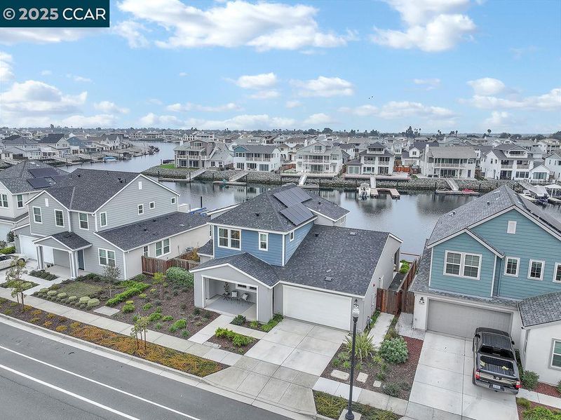 Waterfront Luxury with Private Dock — Resort-Style Community! This Beautiful two level 3 Bedroom 3 Bath waterfront 2022 home is in the coveted Delta Coves, featuring Ivy Point white oak flooring and an open, sun-filled main level designed for effortless indoor/outdoor living. The kitchen offers generous counter space, a walk-in pantry, and clear sightlines to the water. Upstairs, the primary suite includes a private deck with panoramic views of the lagoon and Mt. Diablo, dual his-and-hers vanities, a walk-in closet, and a spa-inspired bath with soaking tub. A modern office (optional 3rd bedroom), a spacious secondary bedroom, and 3 full bathrooms offer flexibility for work, guests, or family. The 3-car tandem garage provides ample storage or the opportunity to expand the living area and maximize waterfront views. The fully landscaped backyard features an outdoor kitchen with a 16-foot bar, full-size grill, sink, fridge, storage, & a built-in pizza oven. ($100K worth of upgrades) Private dock offers fast-water access for boating, paddleboarding, and sunset cruising. This home delivers the best of California indoor/outdoor living on the water. Including access to the private Delta Coves Island Camp—a vibrant 15,000-square-foot hub of activities for families and friends.