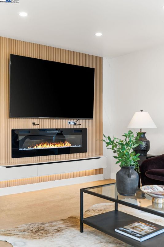 This stunning residence has been completely remodeled from top to bottom with high-end designer finishes and essential mechanical upgrades. This home offers a rare opportunity to enjoy a virtually brand-new living experience in a prime location. Simply turn the key and settle into modern luxury! The heart of this home is the magazine-worthy kitchen, featuring new, high-end stainless steel appliances, including a dedicated wine beverage cooler. Sleek, European-styled cabinetry offers exceptional storage and includes a dedicated coffee bar. Experience sophistication with stunning quartz on the countertops and backsplash, complemented by LED lighting in the cabinets. The living area is anchored by a contemporary entertainment wall finished with matching quartz, featuring a new electric fireplace insert and a floating entertainment cabinet with a new TV and sound-bar—perfect for cozy evenings and entertaining guests. This turnkey property is truly an exceptional find, offering the look and feel of a custom new-build without the wait. Bring your family and friends to come see while it's available!