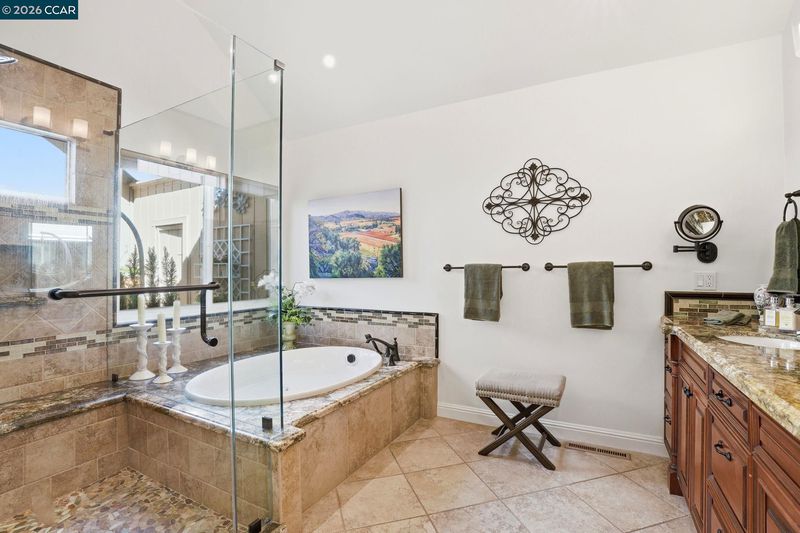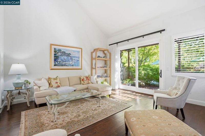 Rarely available, this beautiful 3-bedroom, 2-bath, 2,052 sq. ft. single-story home in the gated Tennis Club Villas of Blackhawk blends comfort and elegance. Soaring ceilings create a bright, open feel from the moment you enter. The kitchen features custom cabinetry, stainless steel appliances, granite countertops, and a sunny breakfast nook surrounded by windows. The formal dining room, highlighted by a stunning chandelier, opens to a side yard with vibrant flowering plants—perfect for indoor-outdoor entertaining. The spacious living room offers a cozy gas fireplace and access to a serene backyard that backs to a lush greenbelt. The generous primary suite also opens to the backyard and includes a ensuite bathroom with a sunken tub and separate shower. Two additional bedrooms are well-sized and open to a private atrium, bringing in natural light and tranquility. A large laundry room with a sink connects to the garage, which features newer epoxy flooring and ample storage cabinetry. Residents enjoy privacy and access to the Blackhawk Tennis Club and pool with membership. A must-see gem!