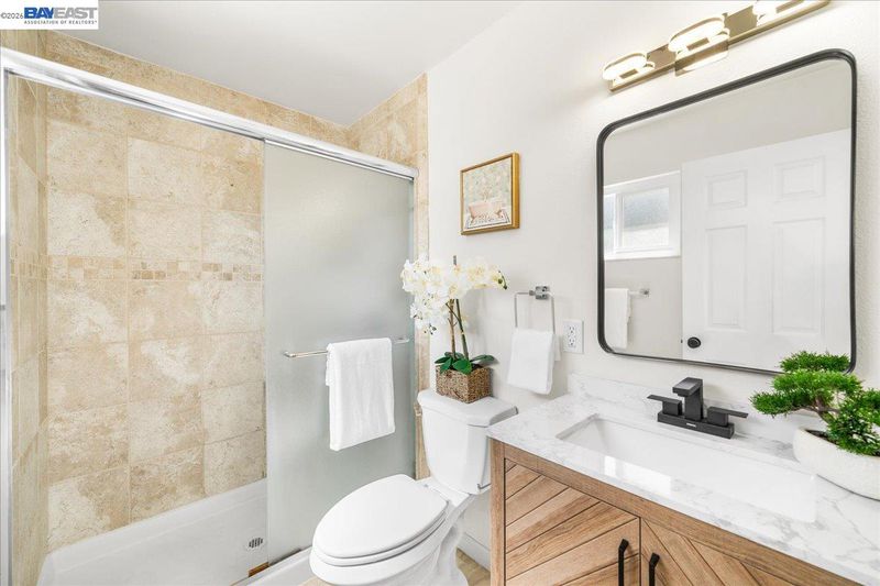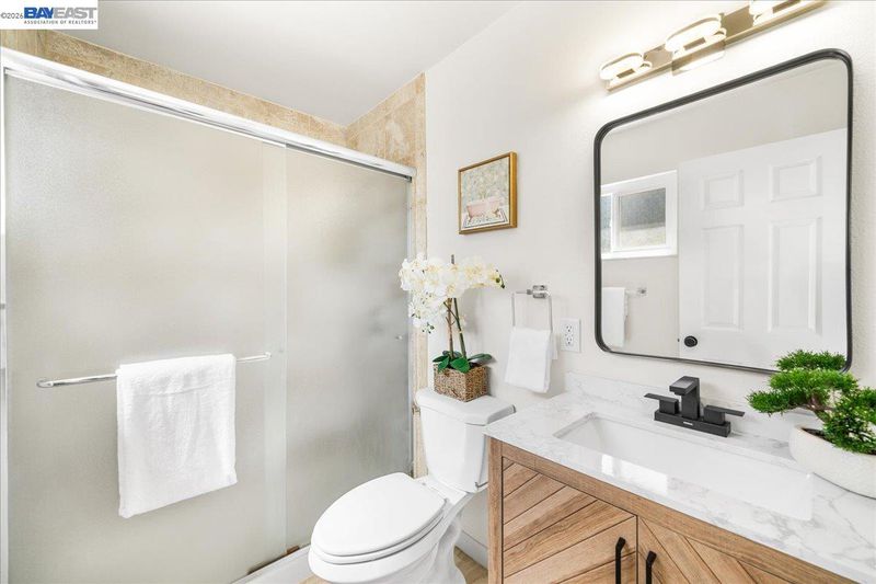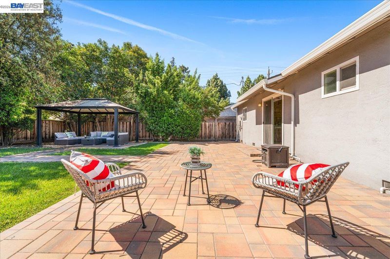 Beautifully reimagined ranch-style residence nestled in Fremont’s sought-after Blacow neighborhood, offering an exceptional blend of timeless charm and modern luxury. This light-filled 3-bedroom, 2-bath home has been thoughtfully upgraded over the past six years with refined finishes and meticulous attention to detail throughout. The stunning remodeled kitchen serves as the heart of the home, showcasing rich maple cabinetry, elegant granite countertops, and sleek tile flooring perfectly designed for both everyday living and entertaining. The bathrooms have been tastefully renovated with designer vanities, tile flooring, and custom tile shower and tub surrounds adorned with travertine walls and decorative inlays, creating a spa-like experience. Enhancements continue with gleaming hardwood floors, dual-pane windows, upgraded lighting, a 200-amp electrical panel, newer central heating and A/C, a newer roof, and improved attic insulation. A Tesla charger adds modern convenience for today’s lifestyle. The curb appeal is undeniable, highlighted by a beautifully landscaped front yard featuring paver accents, a limestone pathway, lush lawn, drip irrigation, and drought-tolerant plantings. The private backyard retreat is ideal for entertaining or unwinding, complete with pavers, a charming gazebo, a custom retaining wall with built-in seating bench, and mature landscaping. Ideally located near Hwy 880, premier shopping, dining, and major Silicon Valley employers, this home offers a rare opportunity to enjoy comfort, style, and convenience in one of Fremont’s most desirable communities.