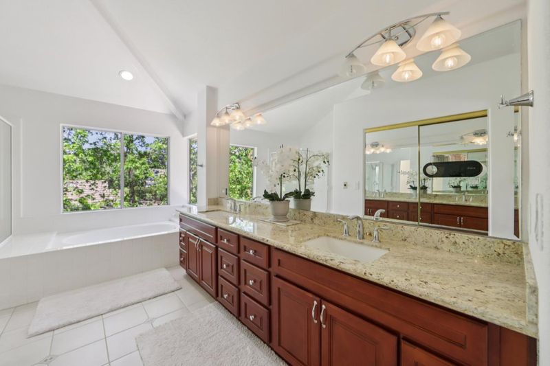 Nestled in a peaceful cul-de-sac, this elegant 2,833 sq ft home offers 4 bedrooms and 3 full baths, including a ground-floor bedroom and a versatile upstairs bonus room (optional 5th bedroom). Vaulted ceilings enhance the spacious feel, while the formal living and dining rooms are perfect for entertaining. The expansive eat-in kitchen features stainless steel appliances, complemented by brand-new hardwood floors and fresh interior paint throughout. The luxurious primary suite showcases scenic hill views, a walk-in closet, and a spa-like bath with soaking tub and separate shower. Step outside to a private backyard oasis complete with a pool, spa, and outdoor BBQideal for relaxing or hosting. Situated on a generous 15,246 sq ft lot with oversized parking. Additional highlights include a 3-car garage with EV charging, Ethernet throughout, and upgrades such as a tankless water heater, water softener, and water conditioner.