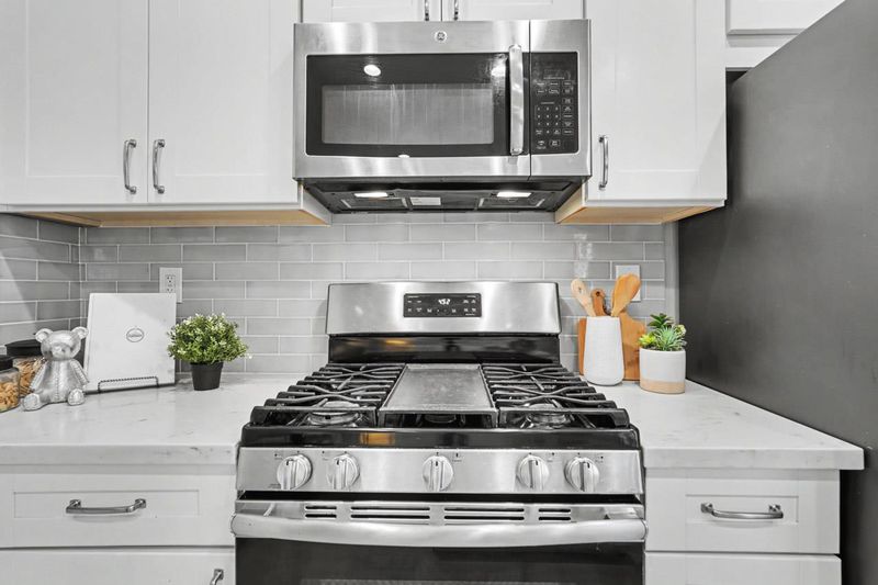 - 220 Volt Outlet, Garbage Disposal, Hookups - Gas, Hood Over Range, Island, Microwave, Oven Range, Refrigerator