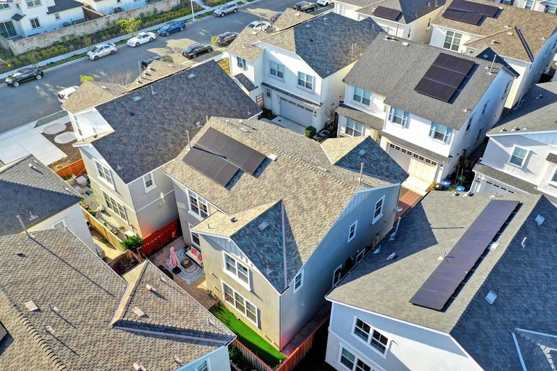 This stunning north-facing home blends style and functionality with 4 spacious bedrooms, 3 full bathrooms, and 2,476 sq. ft. designed with Vaastu principles.The main level features Bedroom and Full bathroom, perfect for guests or multigenerational living. A versatile loft adds flexibility, and sun-filled windows create a warm atmosphere. The open-concept Great Room has 10-ft ceilings, extended windows, recessed lighting, and luxury bamboo blinds. The chef’s kitchen offers high-end touches, including a subway tile backsplash, built-in microwave & wine rack, a 6-burner Bertazzoni gas range, granite countertops, and a large island. The primary suite boasts 11-ft ceilings, a spa-like ensuite with a soaking tub, dual vanities, oversized shower, walk-in closet, and multi-directional blinds. Energy-efficient features include owned solar panels, a tankless water heater, and dual-pane windows. The finished 2-car garage has epoxy flooring, custom cabinets, and an EV charging point. The backyard oasis features a stylish paver patio surrounded by greenery.Come see this beautiful home for yourself.OPEN HOUSE SAT/SUN