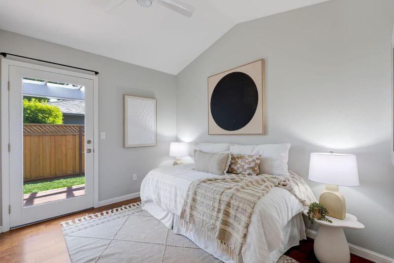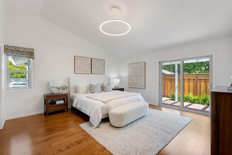 Welcome to this move-in-ready 3BD/2BA San Carlos home featuring thoughtful modern upgrades, a desirable layout, exceptional walkability to downtown Laurel St/Caltrain/Laureola Park, and easy highway access. The open living, dining, and kitchen areas offer seamless flow, vaulted ceilings, abundant natural light, warm engineered hardwood, and central A/C. The updated kitchen includes quartz countertops, a Kraus sink, upgraded hardware, and a Bosch dishwasher. The quiet primary suite at the other end of the home features soaring ceilings, a custom closet, and ensuite bath with double vanity, separate shower, Jacuzzi tub, private water closet, and direct backyard access. Two additional bedrooms feature new ceiling fans and share an updated hall bath. The backyard offers a pergola-covered deck, new lawn, fruit trees, and a dedicated lounge area under the Jacaranda tree perfect for fire pit gatherings. The lot features low-maintenance front landscaping and added privacy with only one shared fence. The attached ~350sf garage is a renovated bonus flex space with epoxy floors, full insulation, custom cabinetry, and new LG washer/dryerideal for office or future ADU. Modern essentials include a Tesla charger, Nest, Ring, fiber internet, tankless water heater and oversized driveway parking.