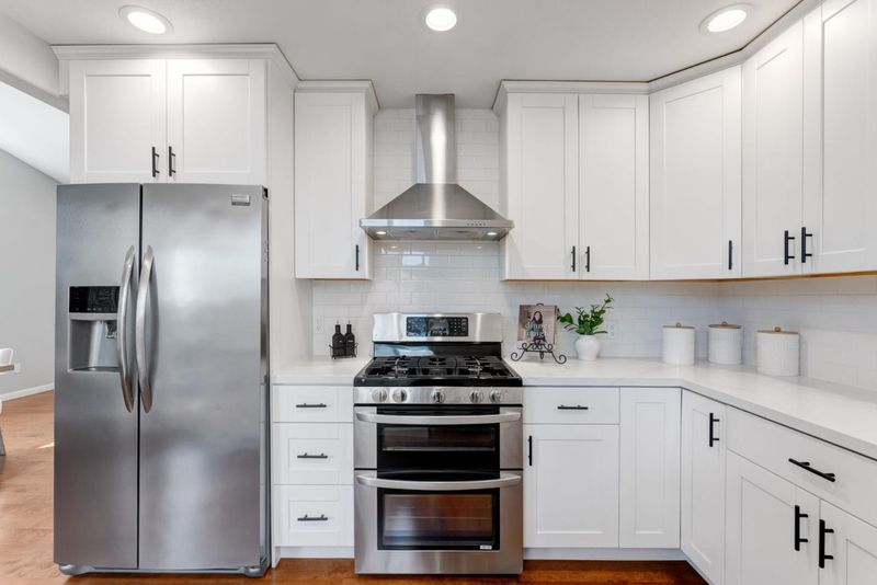 - Countertop - Quartz, Dishwasher, Exhaust Fan, Garbage Disposal, Oven Range - Gas, Refrigerator