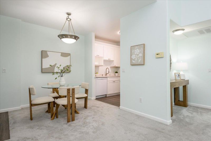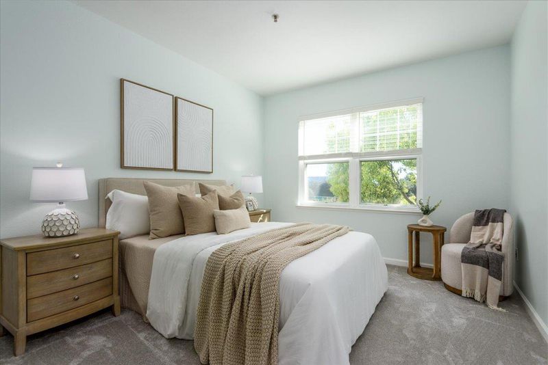 Welcome to your new serene retreat - a beautifully updated top-floor 2-bed, 2-bath condo in a secure, well-maintained building! This light-filled, east-facing, home features soaring ceilings and an inviting open floor plan. Triple-pane windows ensure a peaceful, whisper-quiet interior. The kitchen is thoughtfully designed for both style and function, with generous cabinetry, bright white appliances, and ample countertop space. The two sizable bedrooms are positioned on either side of the living area, with the primary suite featuring its own en suite bathroom. Recent upgrades include fresh paint, renovated bathroom vanities, and laminate flooring. An in-unit washer/dryer adds convenience. With a dedicated garage parking space located near the elevator, this home also offers close proximity to Highway 101, and is just minutes from the vibrant shops and dining along University Ave in Palo Alto. Enjoy nearby neighborhood favorites in Menlo Park like Haven (wine + cheese), Cafe Zoe (coffee/pastries + pizza) La Hacienda (groceries + taco/burrito bar) and Back a Yard (Caribbean grill), along with convenient access to major retailers and home improvement stores in East Palo Alto. This home truly offers comfort, convenience, and style - a hidden gem opportunity not to be missed!