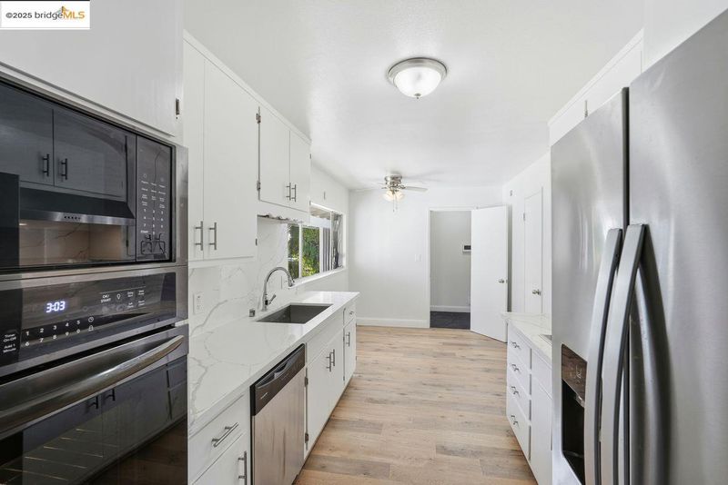 - Dishwasher, Free-Standing Range, Refrigerator, Gas Water Heater, Counter - Solid Surface, Range/Oven Free Standing, Updated Kitchen