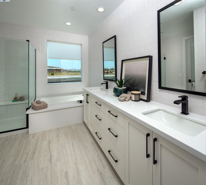 - Shower Over Tub, Solid Surface, Tile, Double Vanity