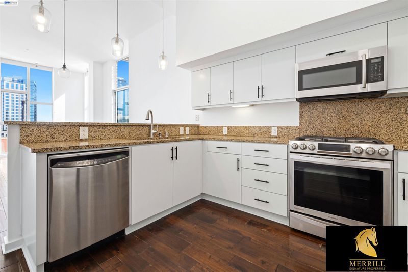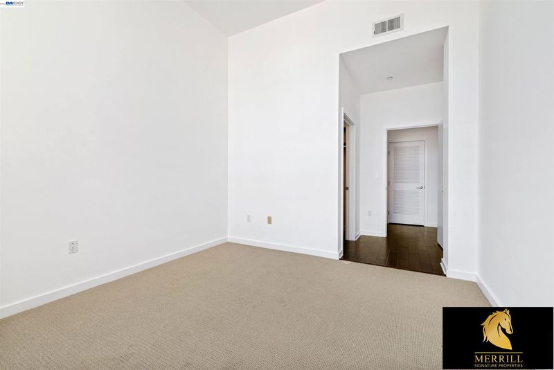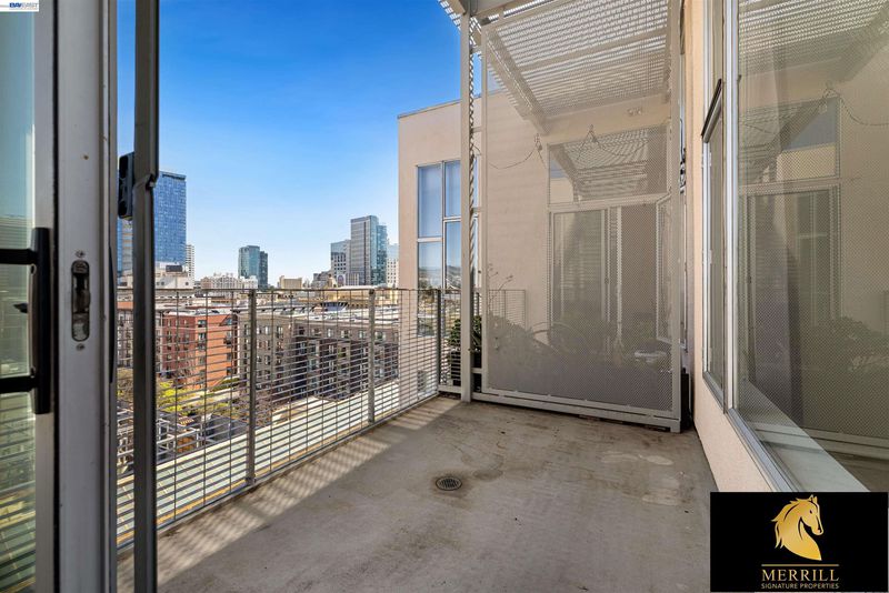 Fantastic Penthouse location, facing sunrise with a view of the Oakland Skyline! Large one bedroom condominium, with unique floor plan allowing privacy for the bedroom area. Super tall ceilings about 11 ft with floor to ceiling windows and access to a large balcony. Washer and Dryer in-unit, parking with storage, building offers a fitness room, courtyard with BBQ and community and package room and dog run! HOA covers more than the basics- water, gas, sewer, trash and high-speed internet along with all the amenities. Pictures are virtually staged