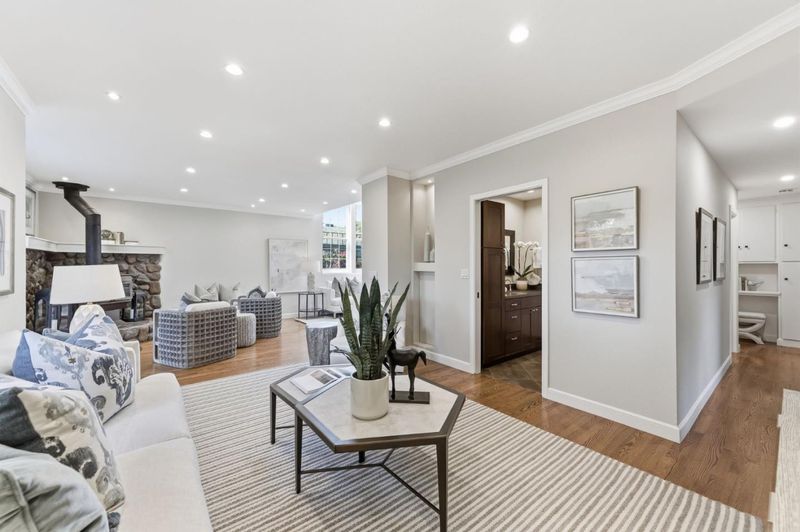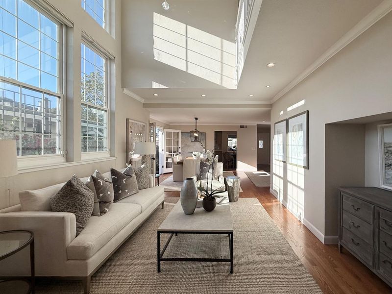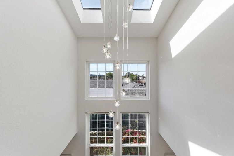 Skylight House: among the larger homes in Fiesta Gardens, offering 2,820 sq ft with a well-designed two-story layout. With easy access to 92, 101, and moments from Trader Joe's, Whole Foods, and Bay Meadows Park, yet tucked away in the serene Fiesta Gardens neighborhood, 1028 Bermuda offers an exceptional combination of convenience and setting. Rare 5-bed, 4-bath floor plan with two bedrooms and two full baths on the main level. The flexible layout with main-level bedrooms is ideal for guests or multi-generational living. At the heart of the home is a dramatic double-height living space where skylights flood the interior with natural light, anchored by a striking glass orb chandelier. The open layout flows to the outdoors, with direct access to the garden and patio from the family room, and side yard access from the dining area. Upstairs, vaulted ceilings extend through three bedrooms & two baths, including the primary suite, enhancing the sense of space and light throughout. Ideally located across from College Park Elementary, home to a Mandarin immersion program, and moments from the pool, clubhouse, tennis courts, and play area amenities exclusive to Fiesta Gardens residents. Plus an EV charger in garage. A rare opportunity to own one of the larger Fiesta Gardens homes.