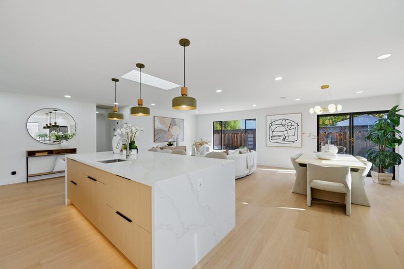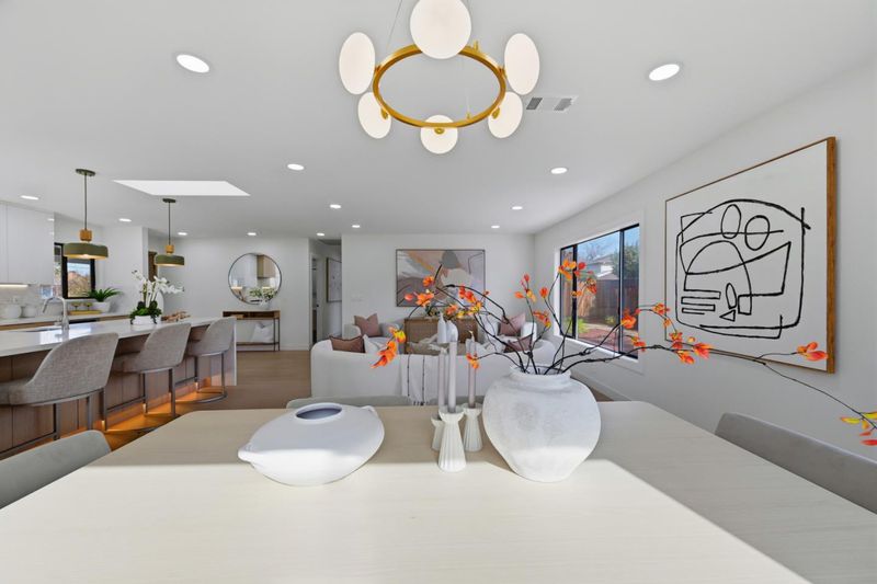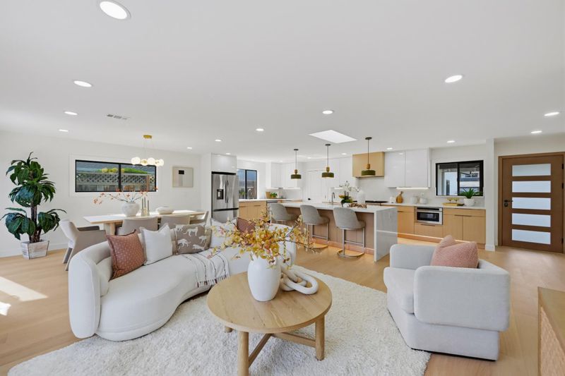 Nestled in one of Campbell's most desirable neighborhoods, this beautifully remodeled 3-bedroom, 2-bath single-story home has been thoughtfully updated with permits, blending modern design, everyday functionality, and comfort. The open-concept layout welcomes you into a bright great room featuring brand-new engineered hardwood floors, abundant natural light, and seamless indoor-outdoor living. A large sliding glass door opens to a lush, newly landscaped backyard, creating the perfect setting for entertaining or relaxing outdoors. The chefs kitchen is a true centerpiece, showcasing custom European-style cabinetry, a spacious center island, and top-of-the-line appliances, including a 36-inch gas range and microwave drawer. The adjacent dining area is ideal for gatherings and everyday meals. The private primary suite is a tranquil retreat, highlighted by a newly updated bathroom with refined designer finishes. Two additional bedrooms are well-appointed and versatile for family, guests, or a home office. Finished two-car garage with epoxy flooring, smooth drywall, and bright LED lighting. Ideally located near top-rated schools, Westgate shopping center, major tech campuses (Apple, Nvidia...), popular dining, and easy access to Lawrence & San Thomas Expressways, Highway 85 & 280.