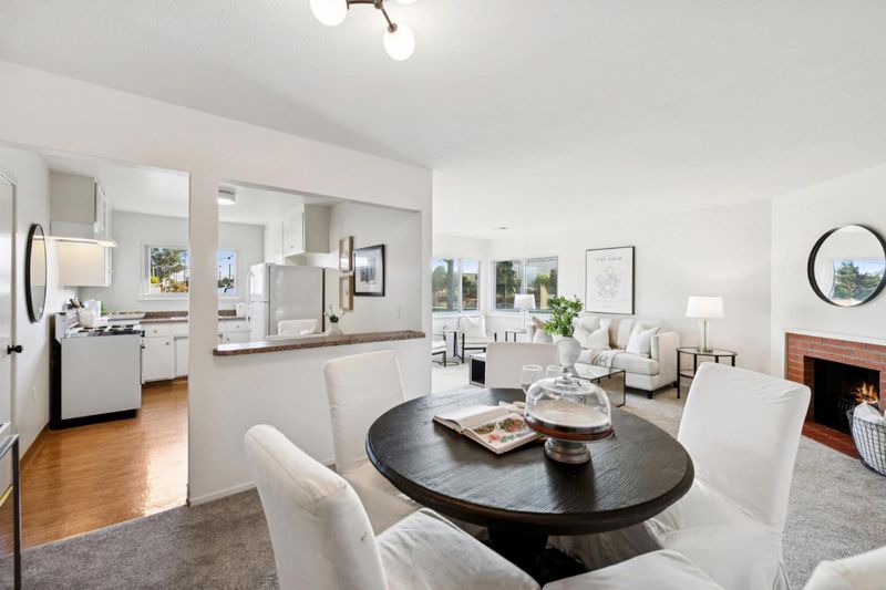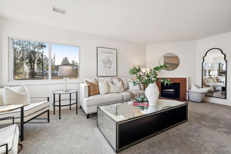 Home for the Holidays! This captivating corner home in Millbrae's enchanting Marino Vista Park neighborhood blends charm, style, and space. Built in 1953, it offers striking curb appeal with meticulous landscaping, shutters, a welcoming front porch, and wide, easy-access streets. Inside, fresh paint, new carpeting, large corner windows, and a classic fireplace create an inviting living area. Adjacent is a separate dining room and a functional kitchen featuring colorful counters, a cheerful breakfast nook and abundant natural light. Down the hall are three comfortable bedrooms with ample closets, including a spacious primary. The updated bath features a large walk-in shower, stylish tile, and a pedestal sink. The expansive yard and oversized garage provide exceptional flexibility for play, hobbies, workspace, or potential expansion. Ideally located between San Francisco and Silicon Valley, with close proximity to top schools, shopping, transportation, Hwy 101, and El Camino Real. A fantastic value in Millbrae.