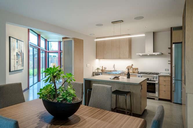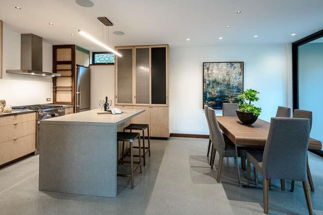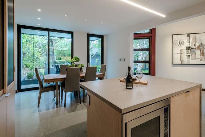 Countertop - Quartz, Dishwasher, Exhaust Fan, Garbage Disposal, Hood Over Range, Ice Maker, Island with Sink, Microwave, Oven - Gas, Oven Range - Gas, Refrigerator, Wine Refrigerator