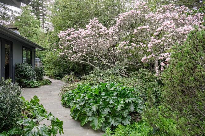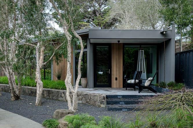 Lower Hillsborough Mid-Century Modern Masterpiece. Walls of glass, soaring ceilings, and resort-caliber grounds define this iconic single-level estate set on a mostly level .716-acre (31,192± sf) lot along one of Hillsboroughs most coveted streets. The 4,670± sf residence showcases a gallery-style entry leading to dramatic living and dining rooms with limestone and granite fireplaces, expansive scale, and seamless indoor-outdoor flow through tall framed glass doors. A perfectly positioned powder room off the main entry offers convenient outdoor access. The stylish chefs kitchen features sleek cabinetry, Wolf 6-burner range with double ovens and grill, 48 Sub-Zero refrigerator, Miele wall oven and microwave, two Bosch dishwashers, and an oversized island with prep sink. An adjacent family room with built-in desks opens to an Ipe deck. The luxurious primary suite opens to the pool, with a spa-inspired bath and heated floors. Three additional ensuite bedrooms provide privacy and comfort. A newly constructed 1,095± sf ADU (2022) with separate address includes full kitchen, living areas, AC, and heated floors. Lush grounds offer pool, spa, pool house with Nano doors, fire pit with built in seating, outdoor kitchen with Lynx appliances, lawn area, solar, EV- outlet, mud/laundry room.