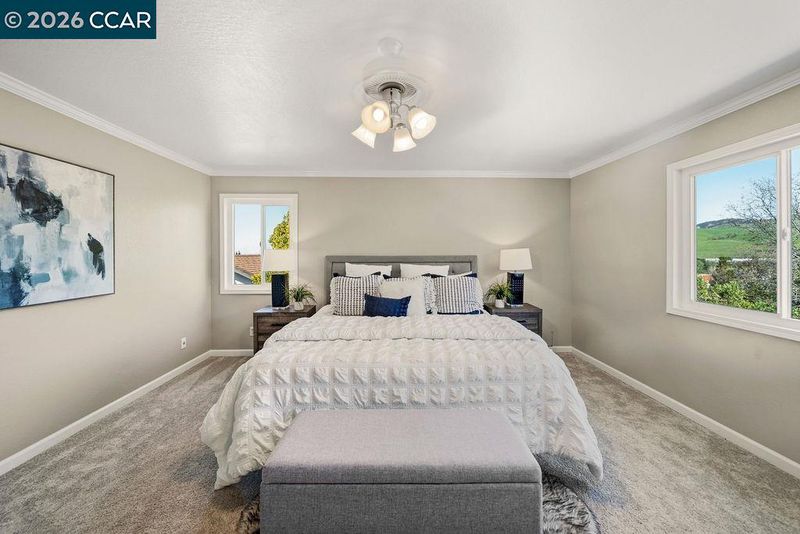 Top of the Mountain! Bright and beautiful home with views in the desirable Dana Hills neighborhood! The downstairs includes an ensuite bedrooom, dining room, living room, family room, and guest bathroom. The kitchen features an island, double oven, breakfast bar, dining area, and plenty of cabinetry making it ideal for both everyday convenience and entertaining. Upstairs you'll find four bedrooms and two bathrooms. The primary ensuite bedroom upstairs features a walk-in closet and updated bathroom with a double vanity. Step out and enjoy the views from the deck attached to one of the upstairs bedrooms! The backyard has ample space and is easily the place you and your friends will gravitate to! Designed for easy maintenance and maximum fun. The grotto is the real highlight of the backyard in this stunning pool! Fun for all in the large pool area. A drive through garage, space of storage or a possible boat or RV. So much to love about this home and yard. In the neighborhood you have access to trails, a playground, and clubhouse. Nestled in a charming court at the top of the hill, come home to excellence!